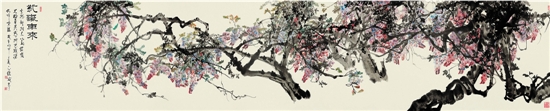 沈威峰(南京书画院花鸟画研究所所长) 紫气东来 124.6×618cm 2016年