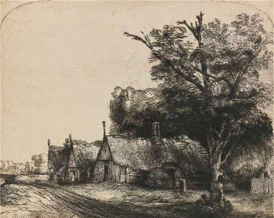伦勃朗 三幢茅屋的风景画 腐蚀与钢刻版画 16.2×20.2cm 1640年 卢浮宫博物馆素描版画部藏