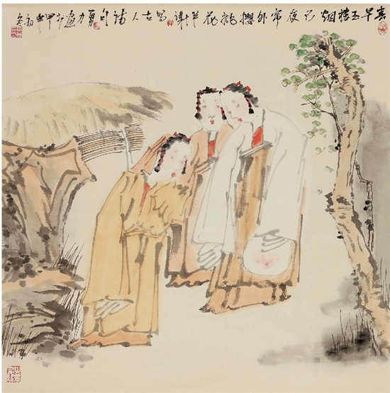 唐勇力 春早玉楼图 68×68cm