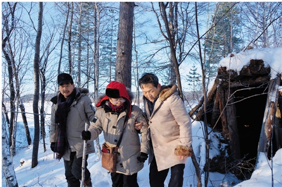 于志学与何协、秦晓飞寻找45年前体验生活时住过的地窨子