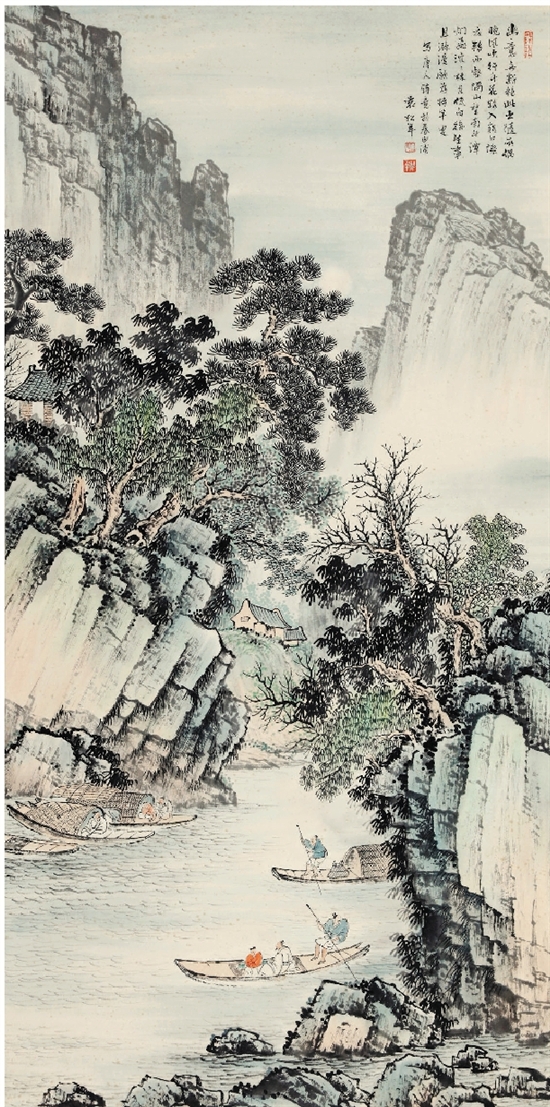 袁松年 春泛 110×55cm
