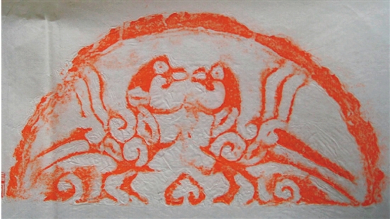 附图三 战国 燕 双鸟纹半瓦当拓片