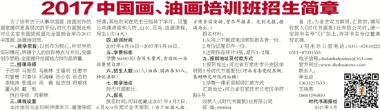 为了给有志于从事中国画、油画创作的画家提供更高层次的平台,时代书画报社和河北名家书画院现面向全国联合举办2017中国画、油画培训班。