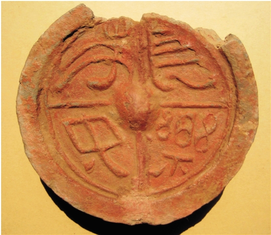 附图三 山西夏县 西汉涂朱砂的“长乐未央”瓦当