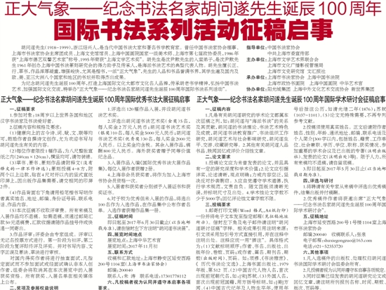 2.优秀稿件作者将获邀出席“正大气象——纪念书法名家胡问遂先生诞辰100周年国际学术研讨会”。