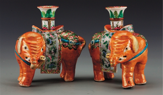 广彩花卉纹太平有象烛台(一对) 清光绪