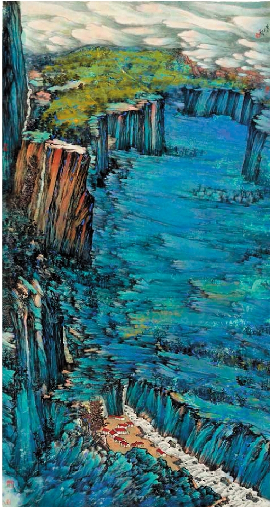 王作均 傍水 185×95cm 皮纸 彩墨 2015年