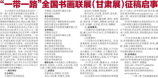 “一带一路”全国书画联展(甘肃展)征稿启事