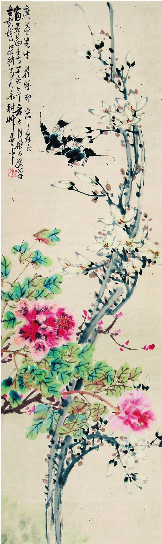 王琴舫 花鸟条幅 纸本 32×118cm 1947年