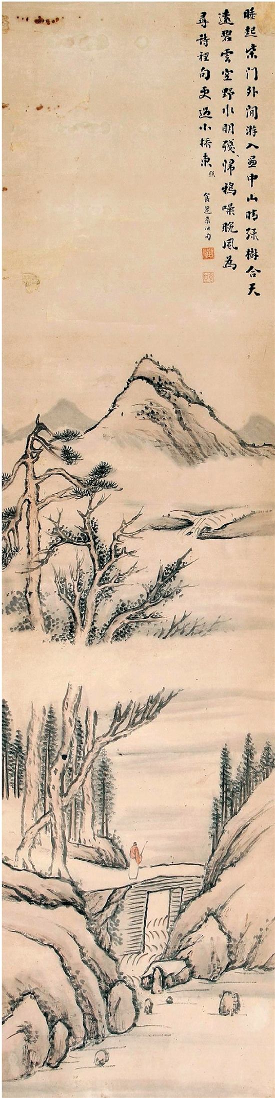 钱食芝 山水条幅 33×120cm