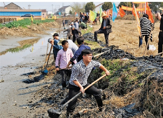 善琏镇党员干部群众利用“红色星期六”合力清淤