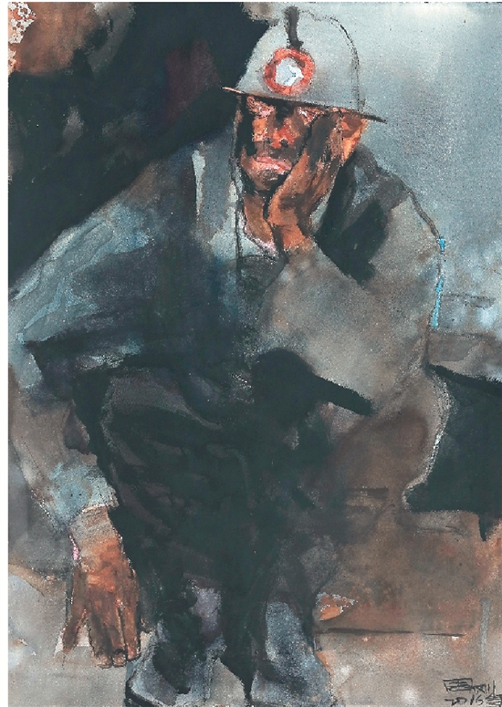 蜷坐在枕木上的矿工老罗 105×75cm