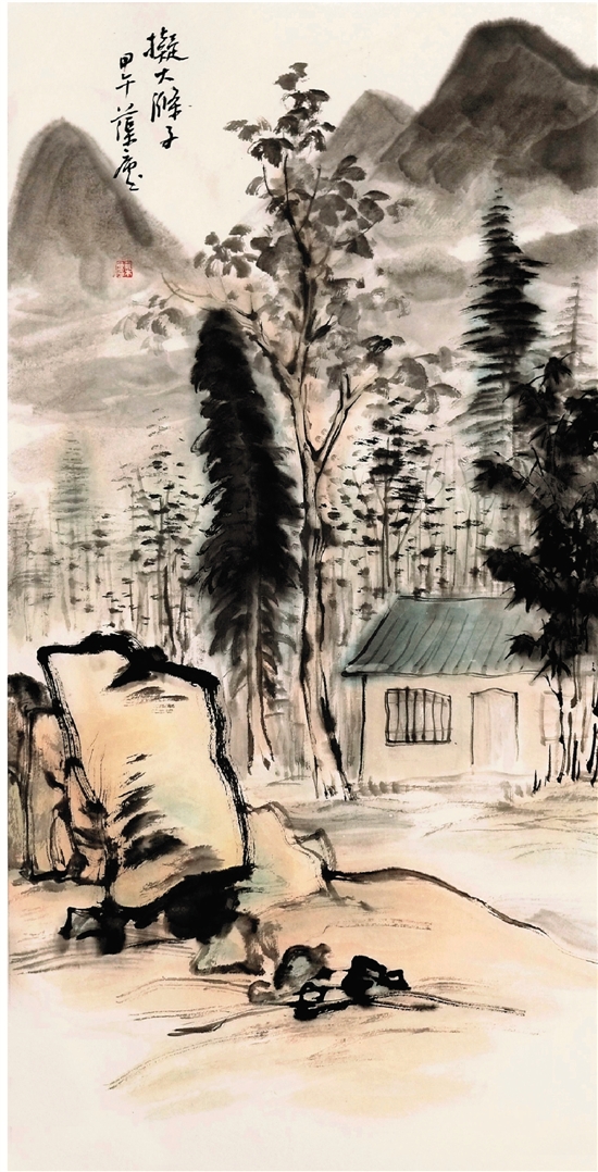 赵亭人 拟石涛画 33×68cm 纸本设色 2014年