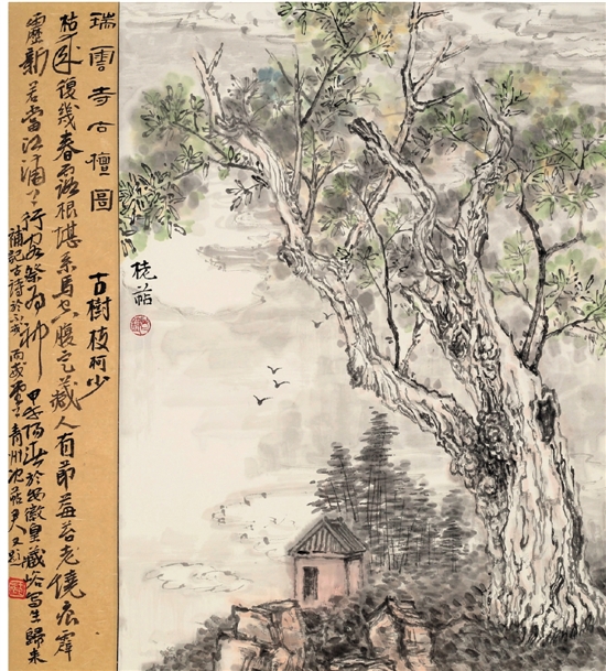 沈铁君 瑞云寺古檀图
