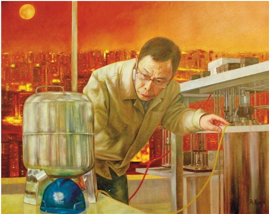 庞军(国网江苏电力) 万家灯火月圆时 油画
