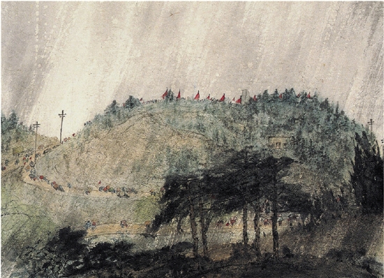 傅抱石 雨中雨花台 设色纸本 纵51cm 横71.2cm 上世纪50年代