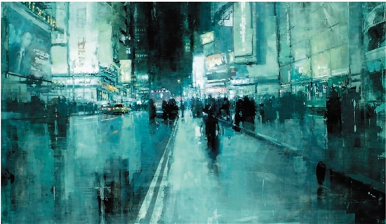 杰里米·曼 第七大道的夜晚 油画 2014年
