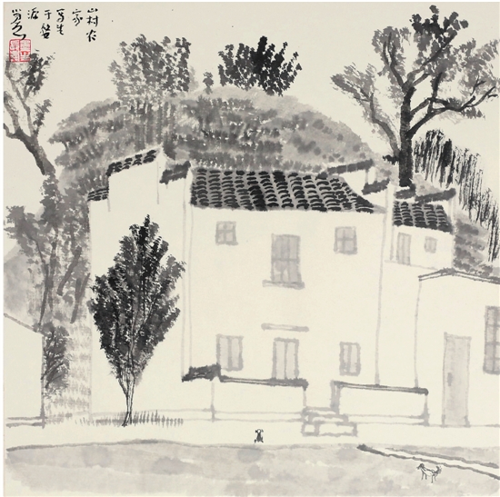 梅墨生 婺源山村农家 32×32cm 2017年