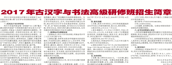 2017年古汉字与书法高级研修班招生简章