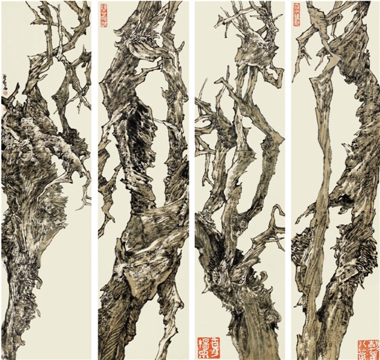 周尊圣 不朽的胡杨组画 244×62cm×4