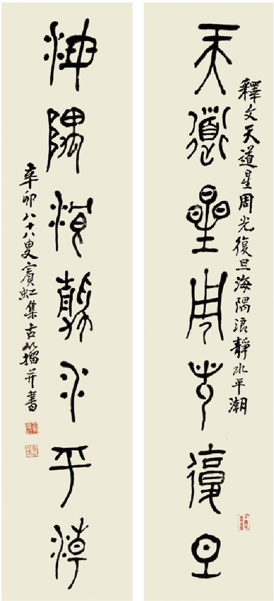 黄宾虹 金文《天道海隅》七言 水墨纸本 对联 142×32cm×2