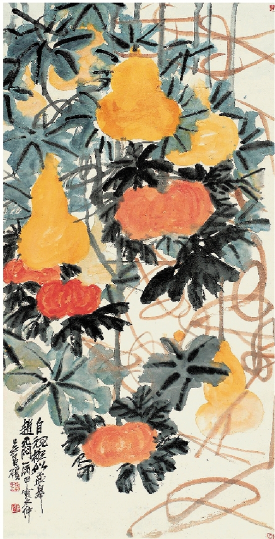 吴昌硕 秋实图 设色纸本 镜片 133×68cm