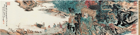 陆俨少 柴门相送图 设色纸本 手卷 35×136.5cm