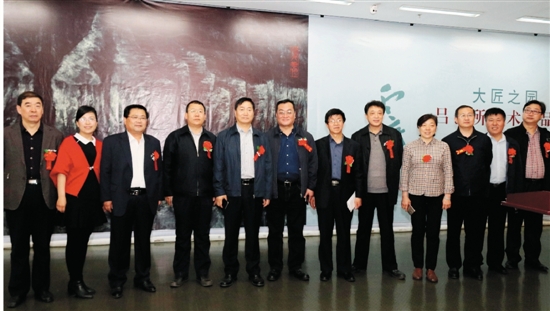 邯郸市人大主任崔永斌、副主任李书生、涉县县委书记汪涛、天津钢铁集团董事长武玉海、邯郸文广局副局长张宝堂、华北冶金矿建书记任宝廷、邯郸市住房公积金书记吕波涛、任佳佳等合影于展厅。