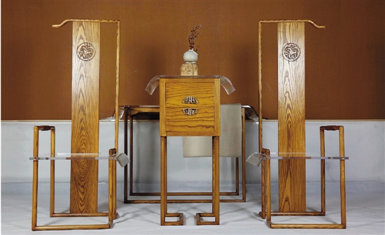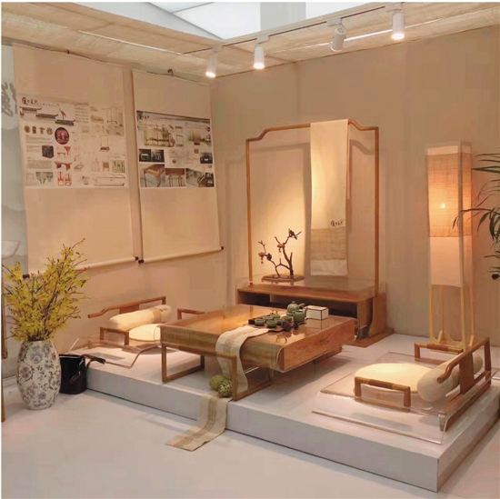作品阐述:复:返回,自然:木色之自然,从而得名“复得自然”。我们的家具设计主要基于当今社会中新中式家具在某些方面的局限性,家具的材质,设计感,与人的互动体验产生的关系等等方面的局限性。在材料方面,大多使用不同类型的木材,在我们的家具中,将会采用新的材料结合,木材与有机玻璃的结合。木材主要选择白蜡木,在两个看似毫无关联材料中加以马头墙,官皮箱的元素加以创新设计出出彩的家具。与人可以产生互动体验是我们这次展览的另一大亮点,使它不再是单单的陈设艺术品。