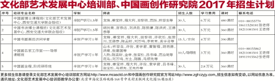文化部艺术发展中心培训部、中国画创作研究院2017年招生计划