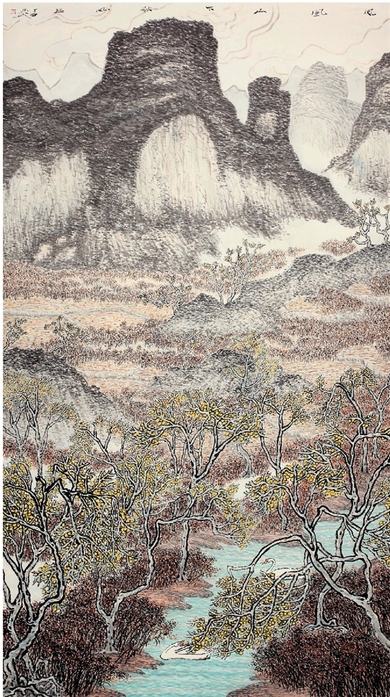 蓝凡武 凤凰山下秋风起 120×220cm 2017年