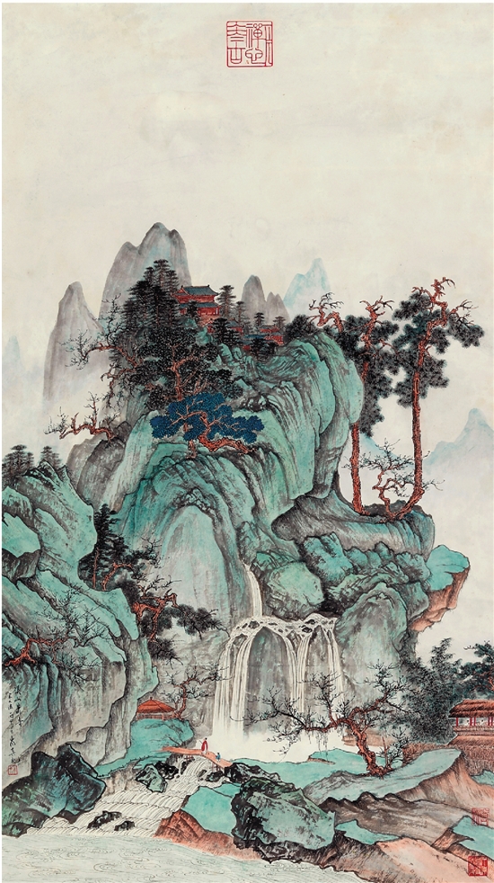 岑其 溪山萧寺图 143×80cm