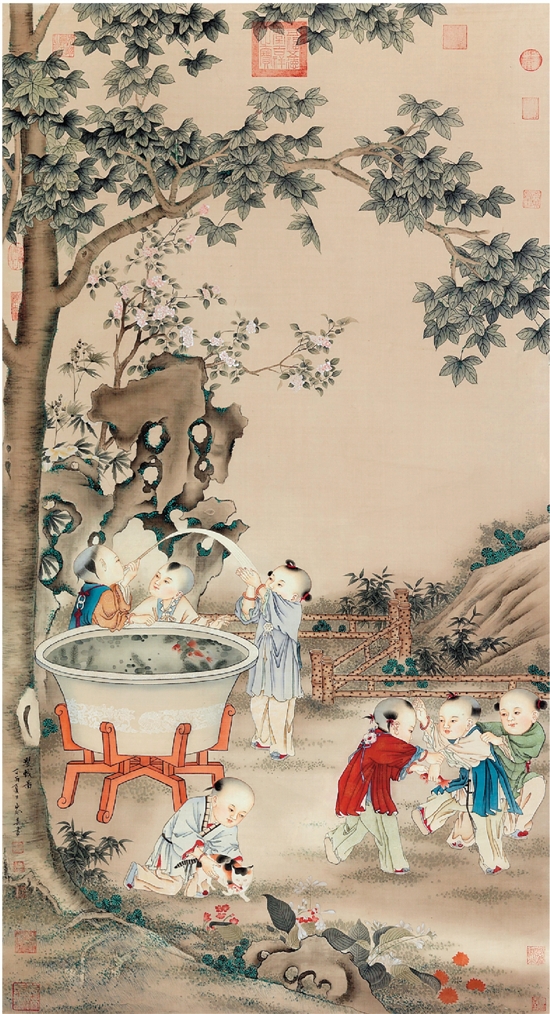 岑其 婴戏图 143×79cm