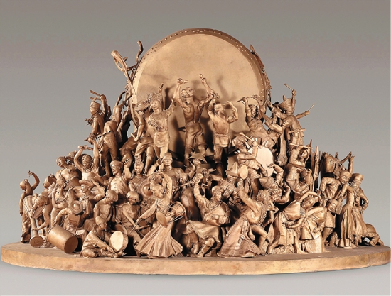 曹春生、周秀清、李惠东 合作 鼓舞:民族大团结 390×390×300cm