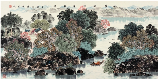 阮江华 山溪秋水渔歌悠 68×136cm