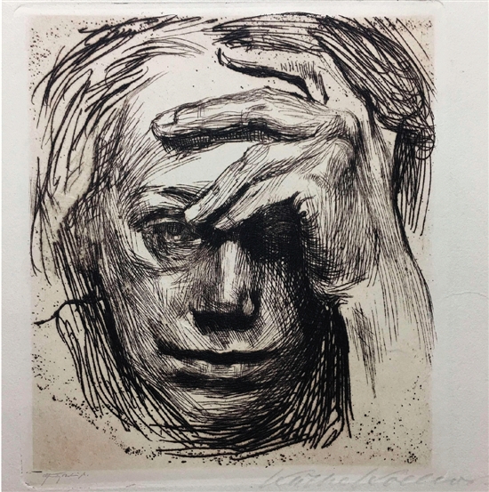 凯特·珂勒惠支 扶额自画像 45×31cm 铜版蚀刻、直刻 1910年