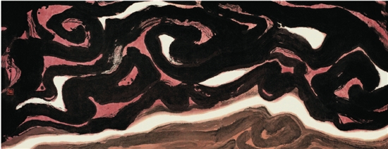 周韶华 九龙奔江之一 纸本水墨 144×365cm 1998年