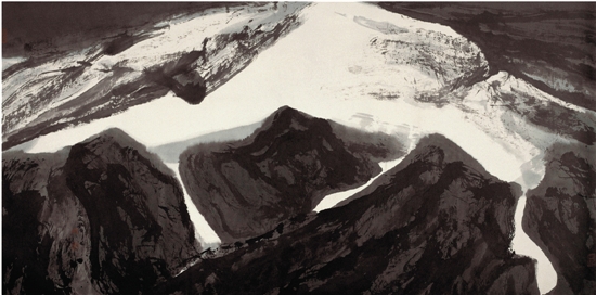 周韶华 冰雪昆仑 纸本水墨 123×247cm 2000年