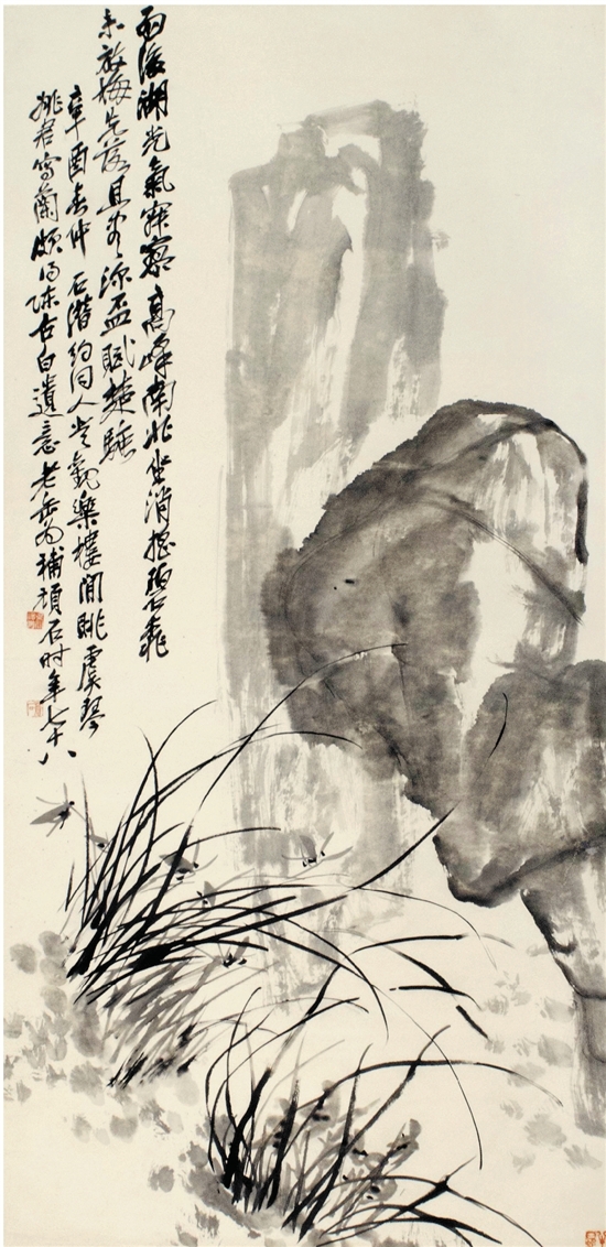 吴昌硕姚虞琴合作水墨兰石图轴,1921年作,现藏于浙江省博物馆