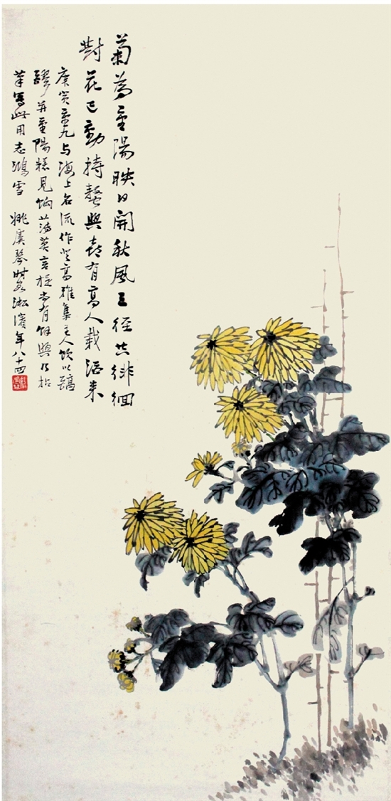 重九菊香图,1950年作,现藏于杭州市余杭博物馆