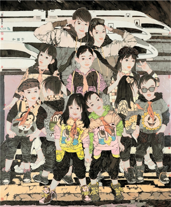 刘翔鹏(北京) 向祖国致敬 210×190cm 中国画 2015 年(“庆祝中国共产党成立95周年全国美术作品展”作品)