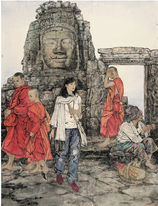 向洋 高棉的微笑 180×240cm 纸本设色 2016年