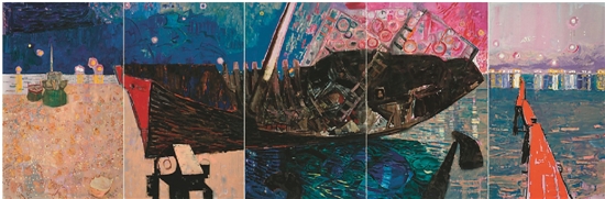 戴士和 别了,大海 布面油画 200×120cm×5 2015年