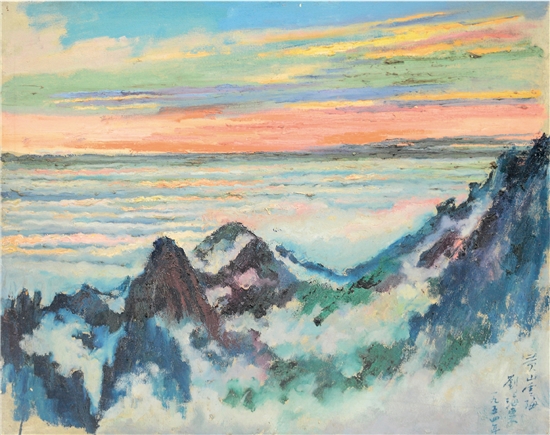 上图为:刘海粟 黄山云海 62×75cm 油画 1954年 捐赠中国美术馆作品