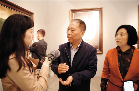 甘肃省文学艺术界联合会副主席马国後(中)接受记者采访