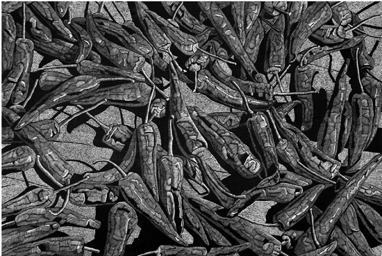 陈国毅 生活的味道之一 黑白木刻 90×61cm