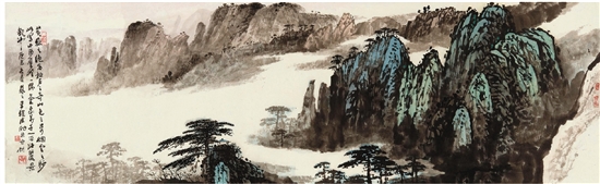 李棣生 西海迎晓 50×136cm 中国画 2000年
