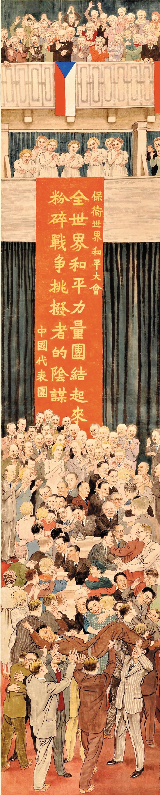 徐悲鸿 世界和平大会 352×71cm 1949年 水墨设色纸本长轴 徐悲鸿纪念馆藏