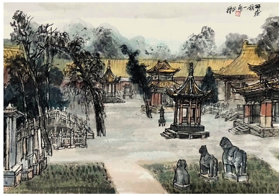 范华 西岳庙一角 45×65cm