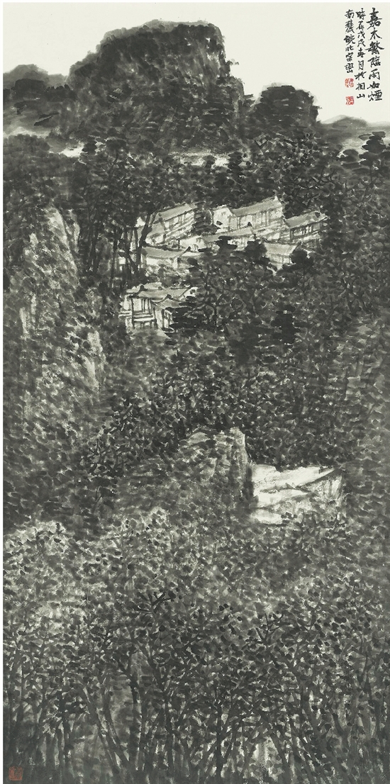 周宗峦 嘉木繁阴雨如烟 139×69cm